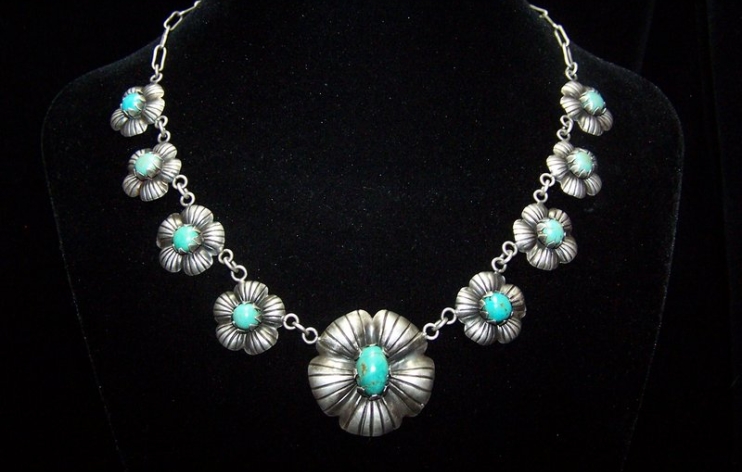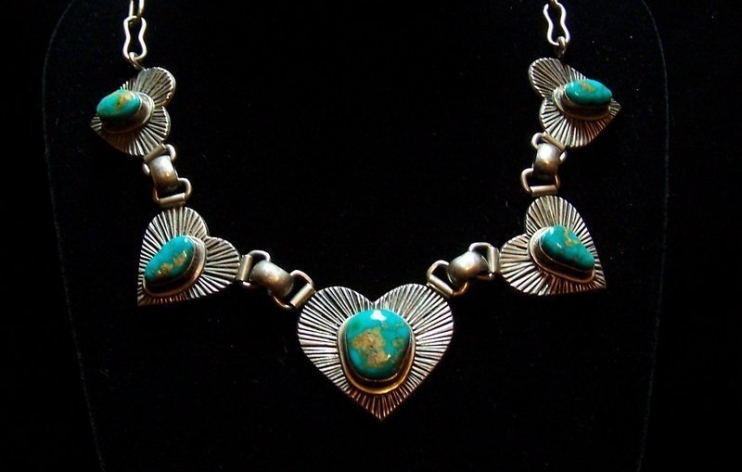 Dramatic Tsosie Vintage Native American Turquoise Sterling Necklace