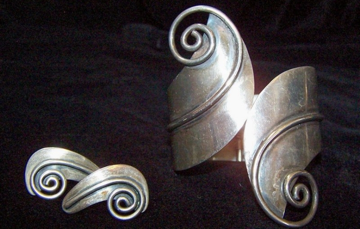 Taxco 980 Mexican Vintage Silver Bracelet and Earrings