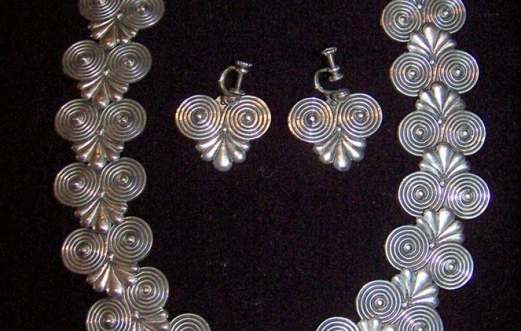 V. Mendez Vintage Mexican Silver Necklace and Earrings