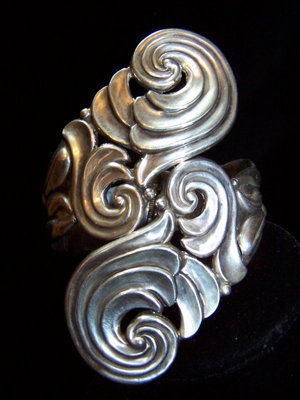 Here we have a published book piece made by Maestro Alfredo Villasana. The Repousse is divine and the diameter is 2.5in. for size wear ability. The face front is 4in. tall with the weight being 62.9 grams heavy. No dents or damage to this beauty. This is a show piece and it is difficult for others not to stare at it's allure.